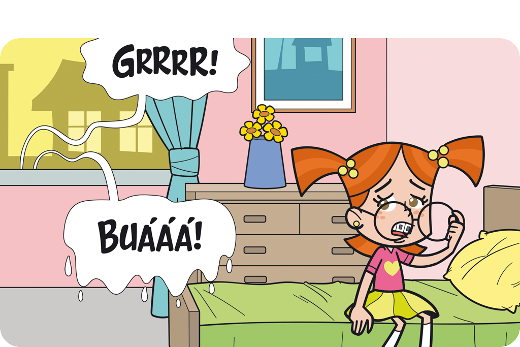 A amiga da Lili se deu mal na prova de Inglês. Isso acontece com todo mundo, mas parece que a Maíra e o Gustavinho não sabem disso. Será que eles vão entender?